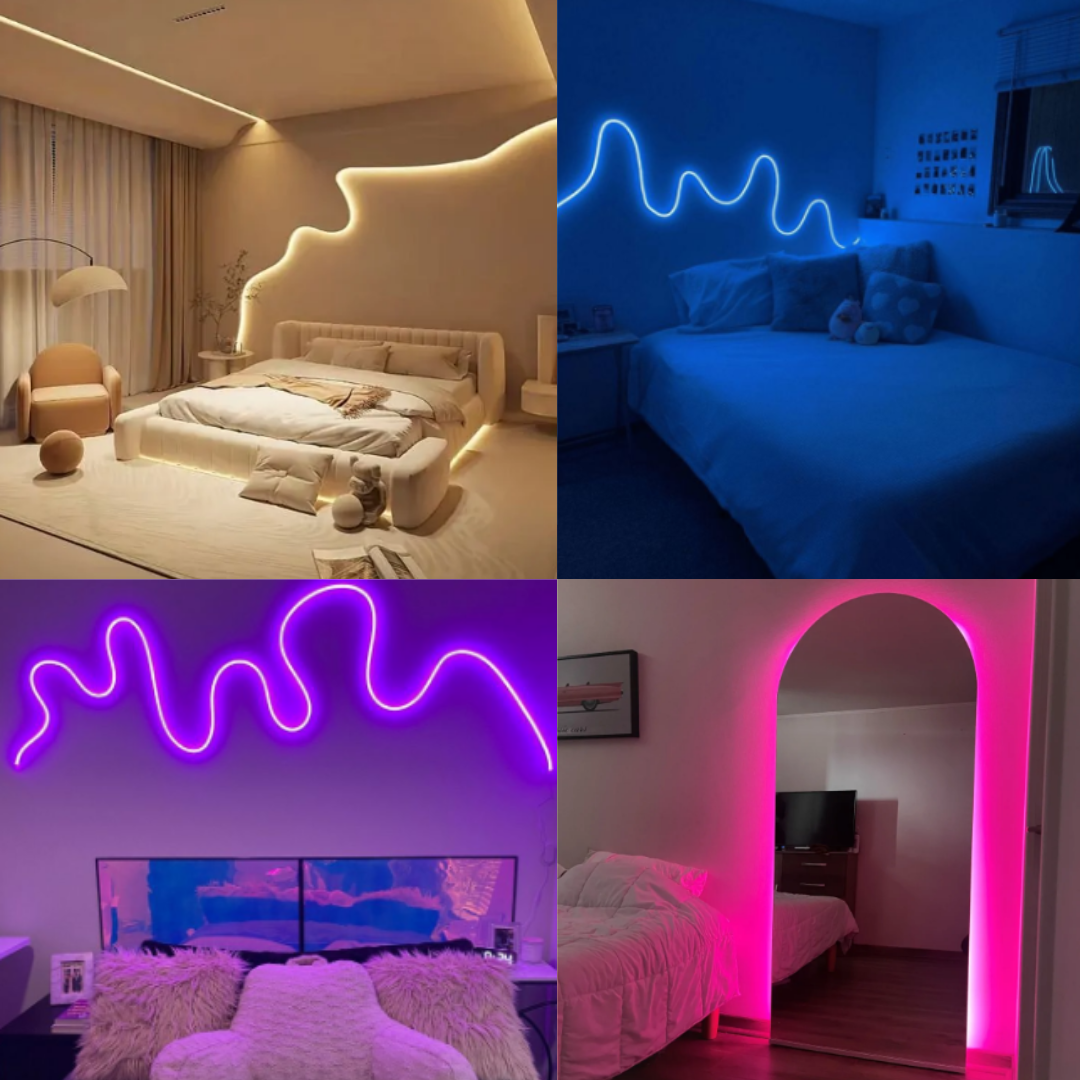 La tira de neón es completamente flexible y se puede cortar cada 0.98 pulgadas (2.5 cm). Adapta la luz a cualquier forma o tamaño que necesites. Tu creatividad es el único límite.