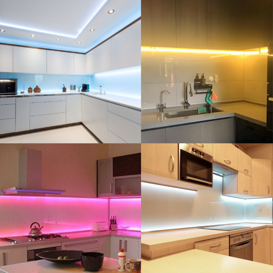 • Bajo los gabinetes: Ilumina la mesada y crea un aspecto elegante.